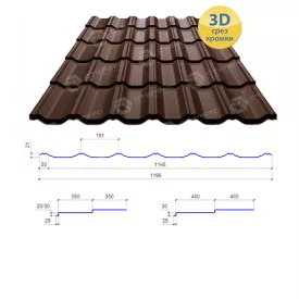 Профнастил кровельный Прушиньски T14 0,5х14х1157 мм РЕ 25 мк