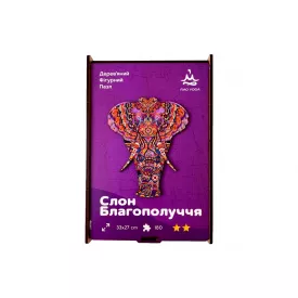 Дерев'яний пазл для дорослих Слон Благополуччя RAO у подарунковій коробці 33 x 27 см 180 деталей