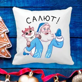 Подушка с новогодним принтом Дед Мороз "Салют" Белый Кавун П003633