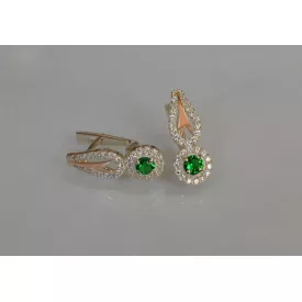 Серебряные серьги Sil с золотыми пластинами 135s-4 Зеленый (Sil-1175)