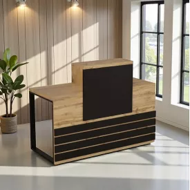 Стойка администратора Tobi Sho Ресепшн/5 центральная для офиса, салона, 1400х636х1090 Дуб аппалачи/Черный