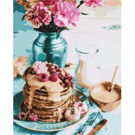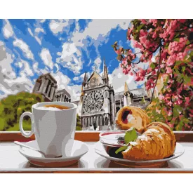 Картина за номерами Brushme XL Кава з круассаном на фоні собору 48х60 см Різнокольорова BS34639L