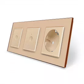 Сенсорный выключатель Sense 2 сенсора (1-1) 1 розетка золотой стекло Livolo (VL-C7FC1/FC1/FCTC16A-6AP)