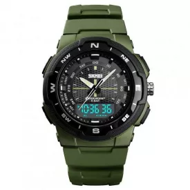 Чоловічий спортивний наручний годинник Skmei 1592 Solar із сонячною батареєю Зелений камуфляж