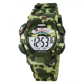 Чоловічий спортивний наручний годинник Skmei 1592 Solar із сонячною батареєю Зелений камуфляж