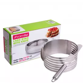 Форма для бисквита регулируемая 15x22 см с отверстием для нарезки и ножом Kamille KL226040 850 грн/шт Купить