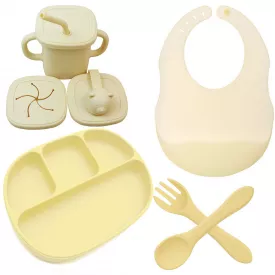 Набір силіконова тарілка килимок, слинявчик силіконовий та силіконова ергономічна ложка (vol-1106)