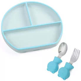 Силиконовая трехсекционная тарелка 2Life Y18 и металлические приборы Y25 Серый с оранжевым (v-11550)