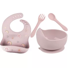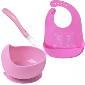 Набір силіконова тарілка килимок для годування дитини 22х15 см та слинявчик ПВХ Рожевий (vol-1071)