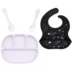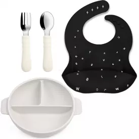 Набор детской посуды 2Life Волна тарілка та прибори Y23 та слинявчик Букви Чорний (v-12067)