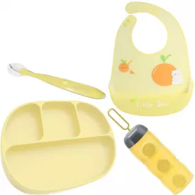 Набор силиконовая тарелка трёх-секционная слюнявчик ложка вилка 2Life Y25 4 шт Оранжевый (vol-9909)