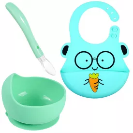 Набір Слюнявчик силіконовий Салатовий + силіконова ложка для годування дитини ергономічна (vol-787)
