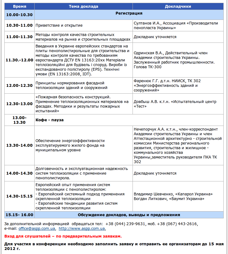 — Предоставление участникам конференции результаты исследований различных конструктивных решений с использованием пенополистирола.
