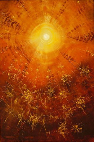 И красим способом, описанным выше. Стараемся подобрать цветовую гамму гармоничную. Мучаясь любопытством, оставляем наше сокровище на сутки. Дальше обрабатываем, как обычно: утюгом или паром, в зависимости от типа красок. Когда будете чувствовать себя свободно в этой технике, можно будет дополнять ее методом холодного батика. Тогда вещи станут еще более загадочными.