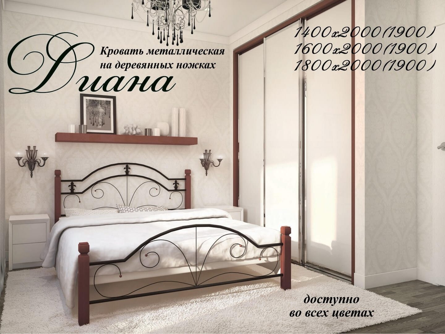 Характеристики товара Кровать Металл-Дизайн Диана на деревянных ногах 1900(2000)х1400 мм черный бархат