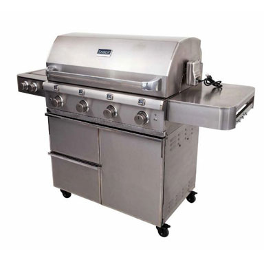 Материал конструкции, горелок, решеток, полки для подогрева, двери и крышки: нержавеющая сталь 304