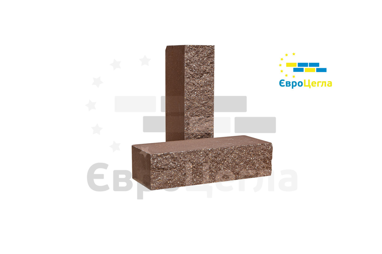 Фасадный кирпич коричневый колотый полнотелый, 250х100х65мм