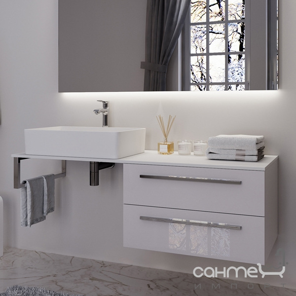 Консоль для раковины с тумбой и столешницей из акрилового камня Marsan Oscar 1400 правая белый глянцевый