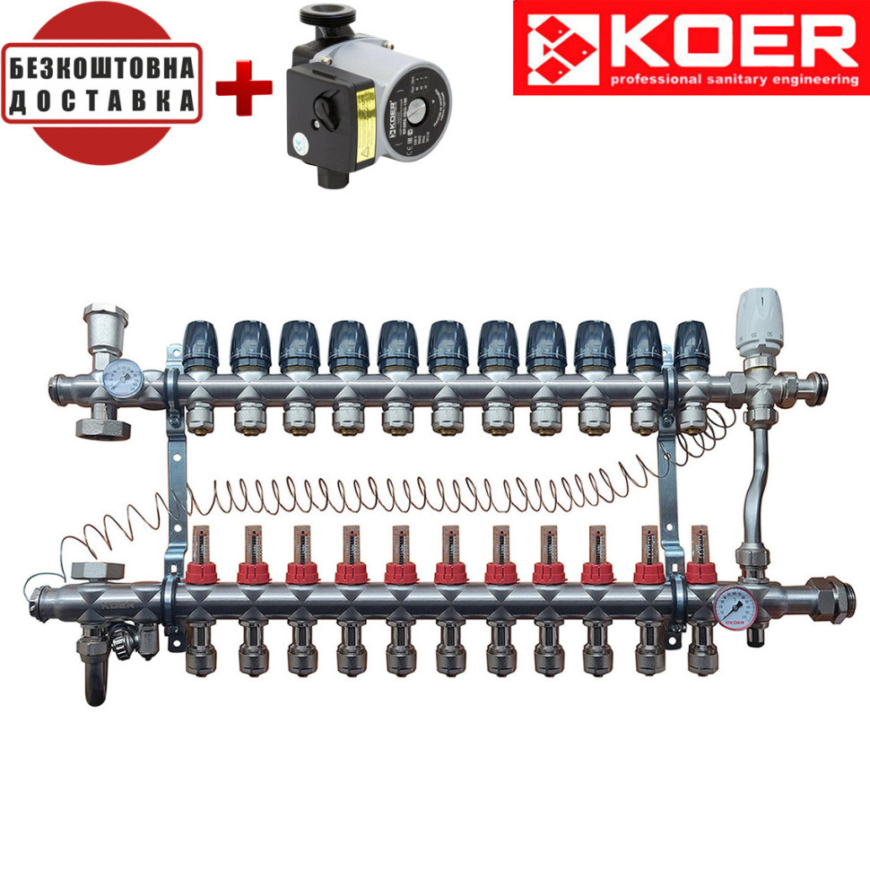 Основне завдання колектора для теплої підлоги KOER – змішування та перерозподіл потоків теплоносія. Залежно від кількості теплових контурів та площі приміщення, колектори можуть мати різну кількість необхідних для підключення висновків.