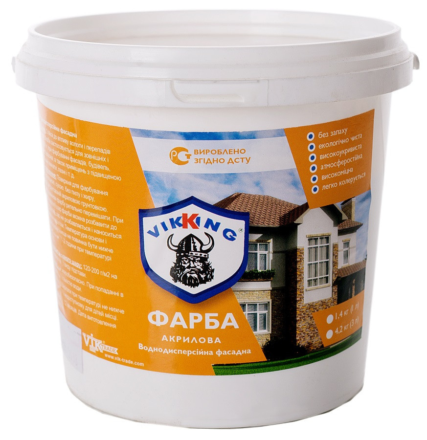 Характеристики товара Краска фасадная силиконовая VIKING 14 кг