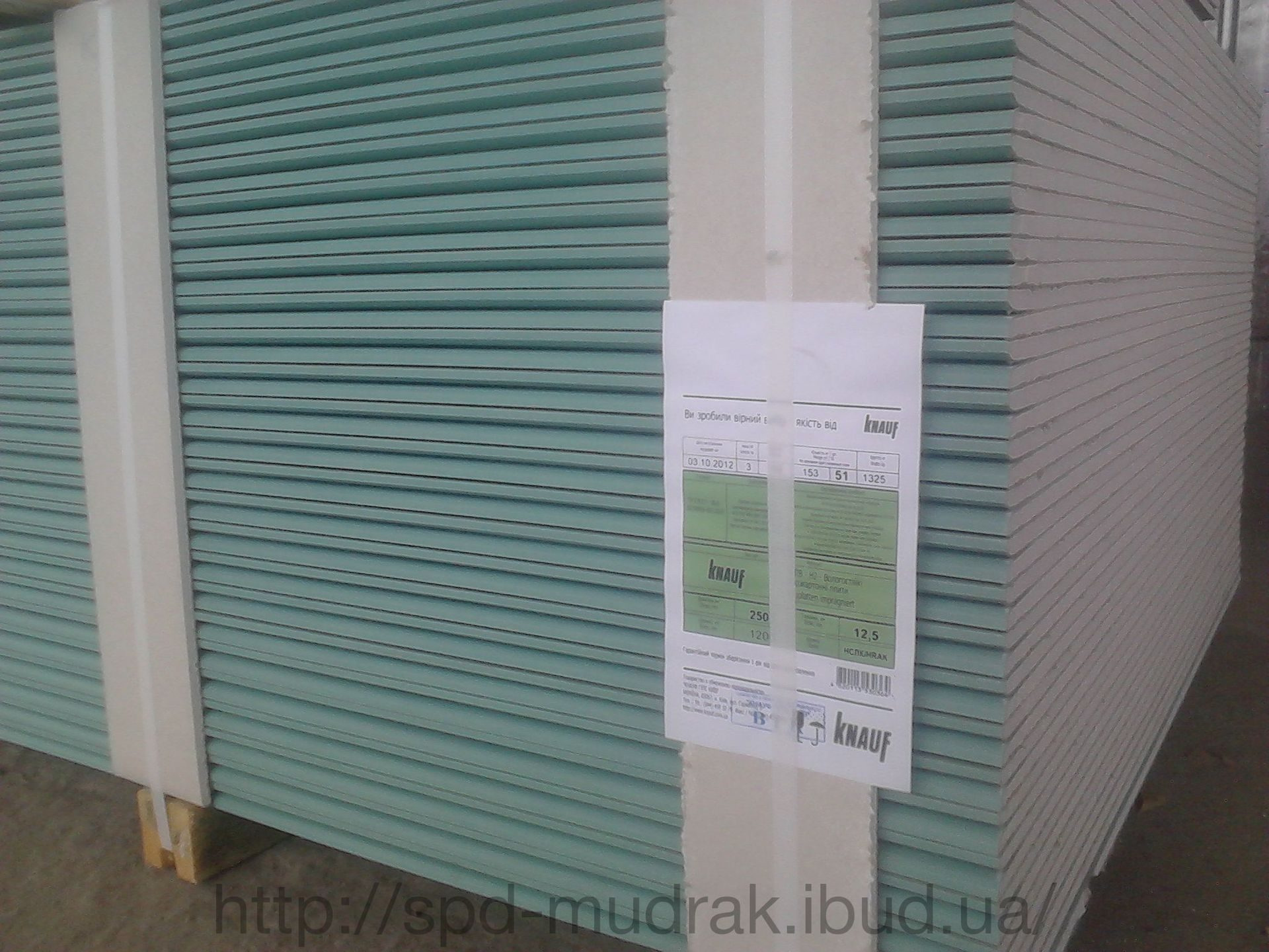 Гипсокартон влагостойкий Knauf 1,2*2,5 м