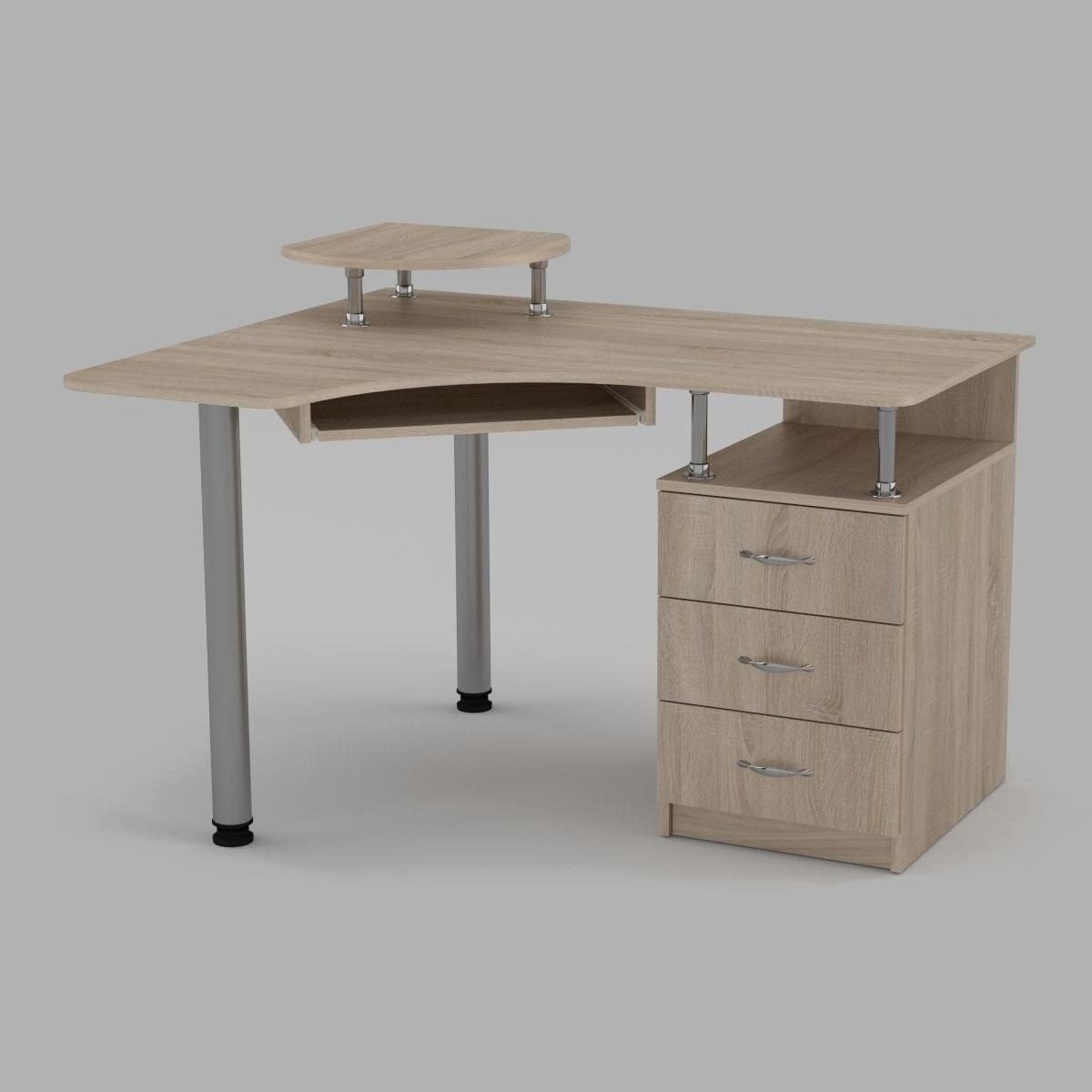 Угловой компьютерный стол Компанит СУ-2 с тумбочкой и надставкой под монитор цвет дуб-сонома