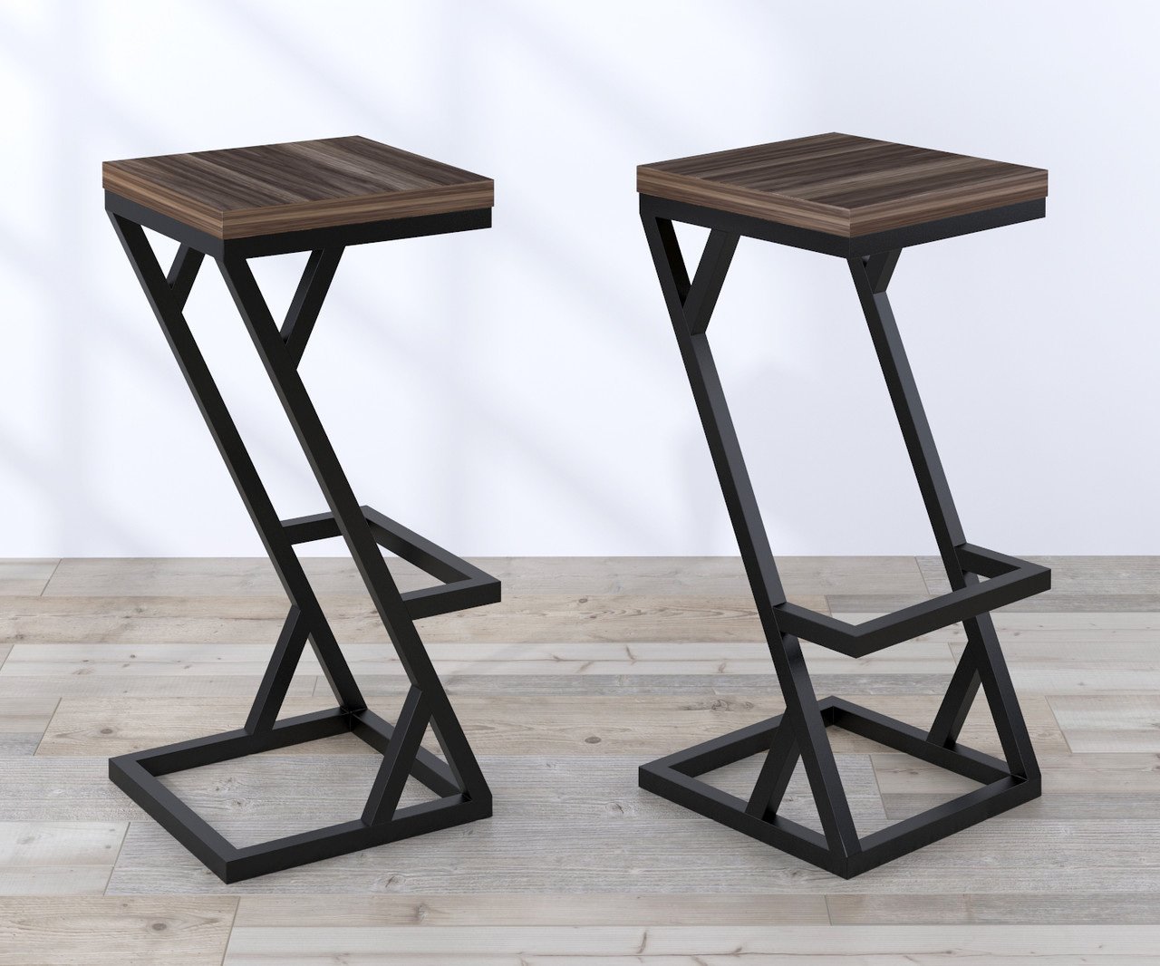 Стул барный BS-2 Loft-Design металлический каркас N-формы твердая сидушка лдсп орех-модена