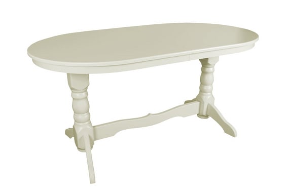 раздвижной обеденный стол в размере 1600-2000 мм и высотой 750 мм, овальной классической формы с деревянными ножками - рассчитан на 6-8 персон.