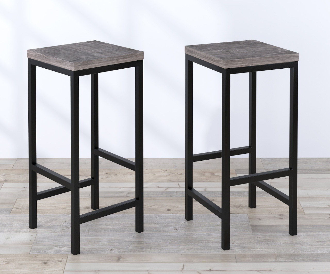 Стул барный BS-2 Loft-Design металлический каркас N-формы твердая сидушка лдсп светлый дуб-борас