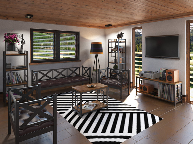 Готовое решение для гостиной комнаты - металлическая мебель от Tenero: гостевой диванчик, тумба ТВ, журнальный столик в одном стиле Лофт.