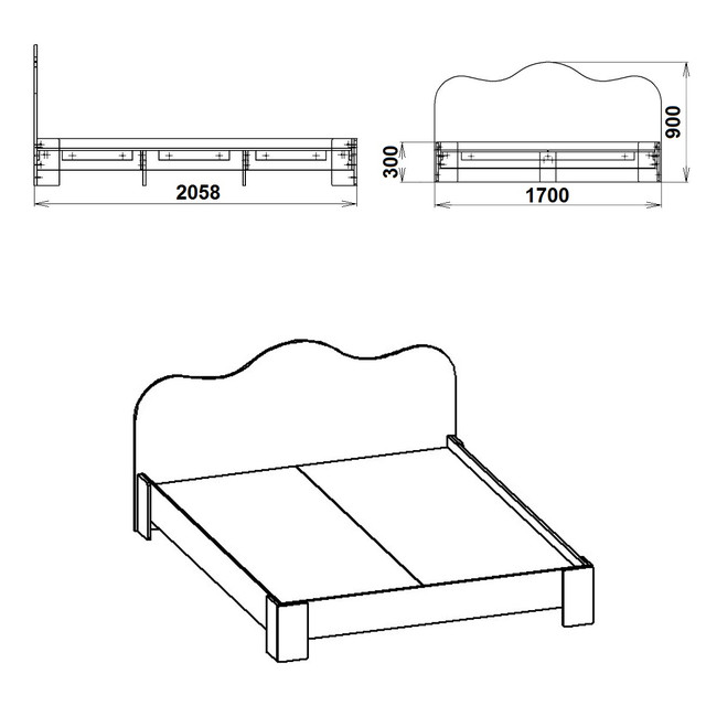 Габаритные размеры кровати: длина 2058 мм, ширина 1700 мм, высота изголовья 900 мм.