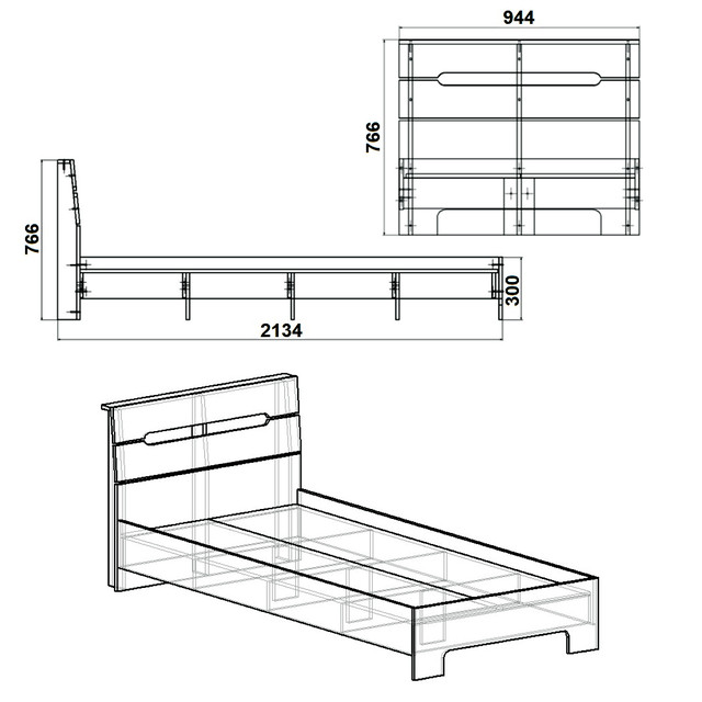 - проем под матрас в размере - 2010х910х60 мм