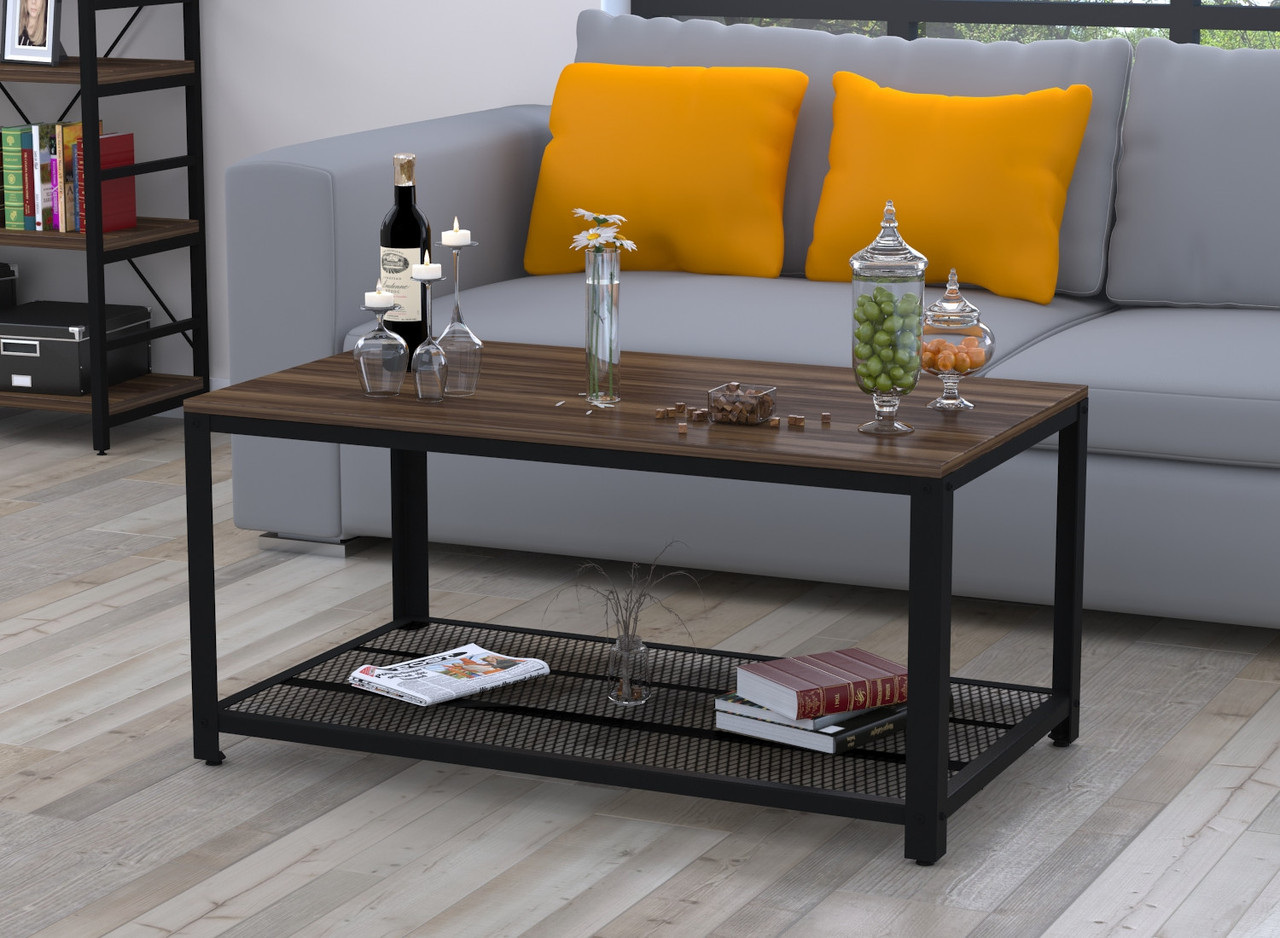 Стиль лофт предполагает использование в интерьере нарочито простых и грубоватых предметов мебели. Однако, каждый стиль делают детали. Одна из таких деталей — журнальный стол. Текстура ДСП под дерево, каркас из стали холодного проката, полка из металлической сетки — такой лаконичный и простой дизайн как нельзя лучше соответствует стилевым требованиям.