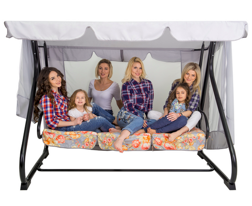 Такая садовая напольная качель - это создание уютного уголка для отдыха в загородном доме, на даче. На качели могут разместиться до четверо взрослых человек, а если с маленькими детками то и все шестеро!