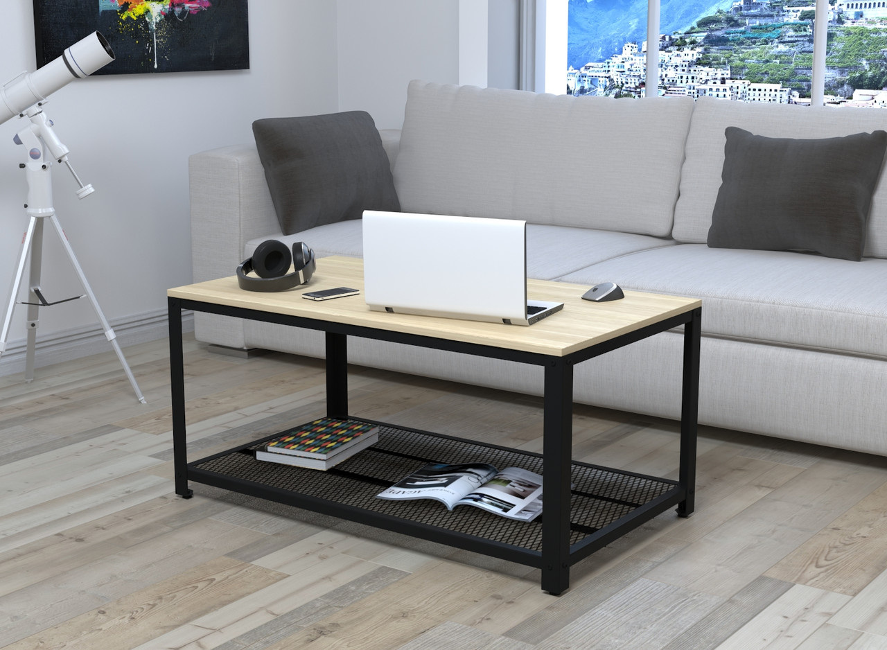 Прямоугольный журнальный столик Loft-Design L-1 900х500х400 мм метал+лдсп Светлый дуб-борас