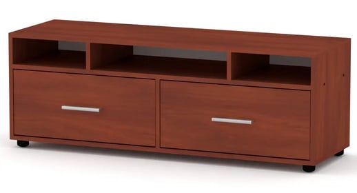 применяется в гостиной в доме под различную аппаратуру - ТВ, аудиосистему или как отдельный элемент в любой комнате в квартире. Модель имеет два выдвижных ящика и три ниши под различные вещи - телефоны, планшеты, книги, пульты и т.д.