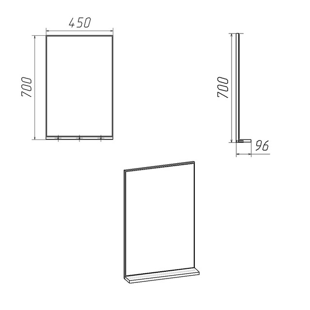 - Зеркало-2 - ширина 450 мм, высота 700 мм, глубина 96 мм; размер упаковки - 700х452х32 мм; вес 7 кг.