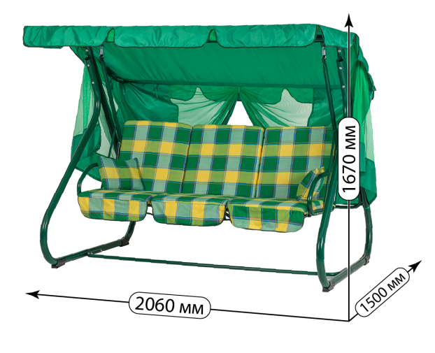 Широкое сиденье размером 1710х535 мм позволит удобно расположиться на качели и насладиться отдыхом в ней.