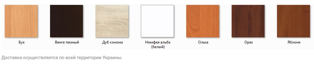 Цвет ДСП: Бук, Венге, Ольха, Орех Экко, Яблоня, Дуб Сонома, Нимфея Альба.