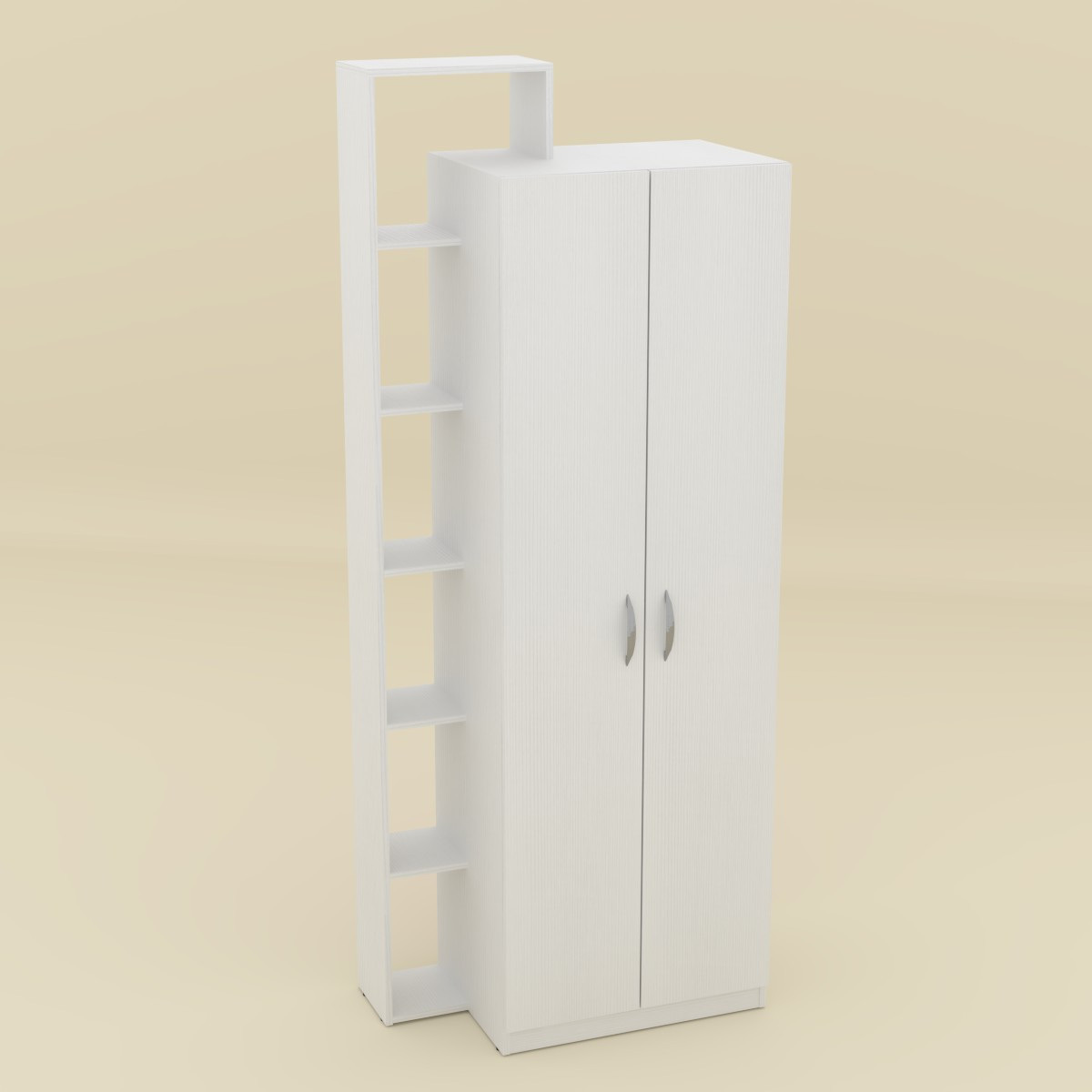 Шкаф-9 Компанит для спальни, двухдверный с открытыми полочками, лдсп Белый