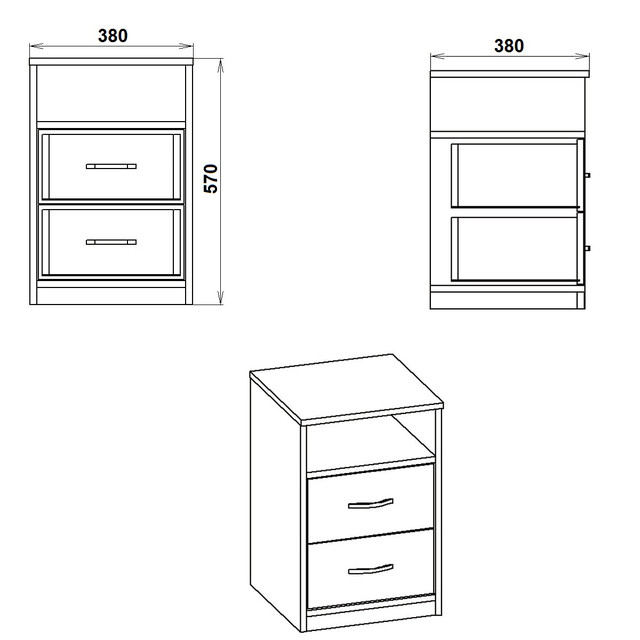 * вид и размер прикроватной тумбочки ПКТ-2 :