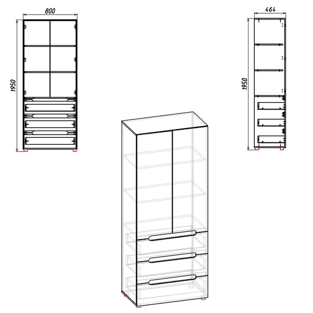 * вид отдельных элементов стенки Компанит для спальни - Шкаф-22, МС ТВ-5, МС Шкаф-21 с размерами.