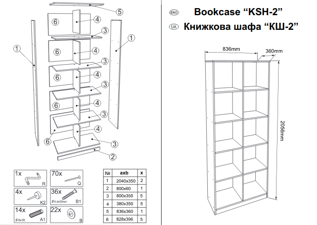 Характеристики товара Книжный шкаф витрина Компанит КШ-2 открытый лдсп дуб-сонома для дома офиса