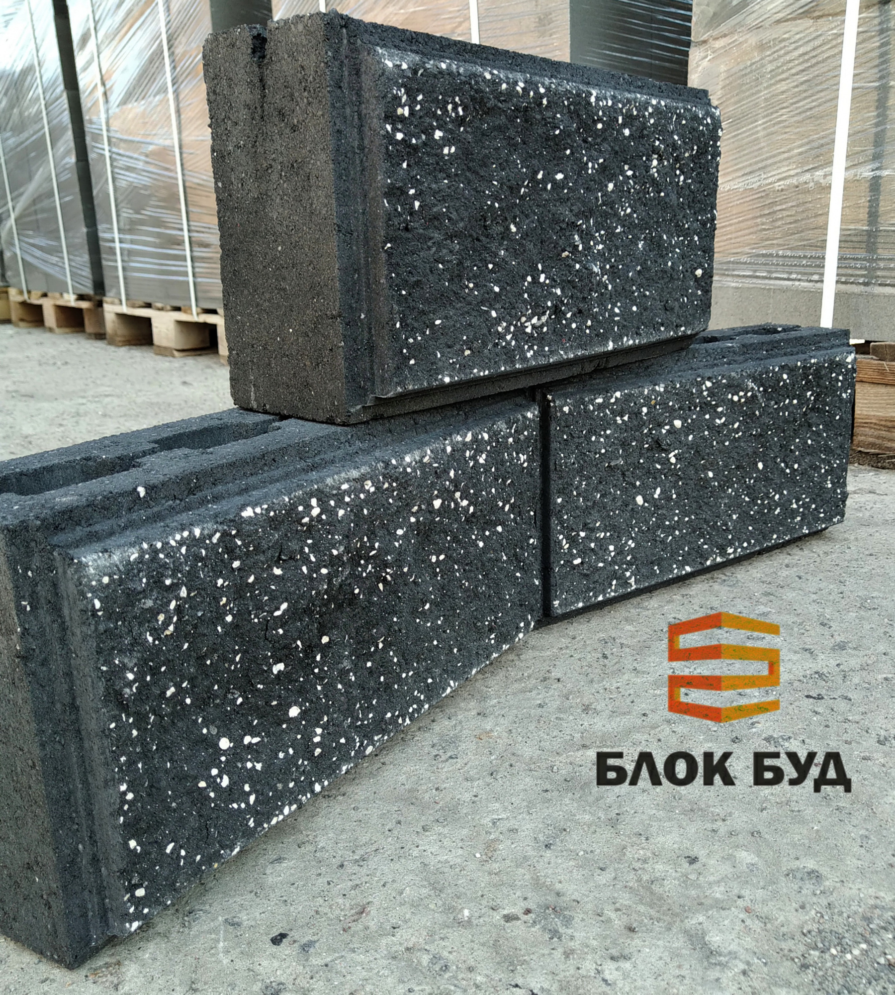Блок колотый "Рваный камень" черный черный 90х190х390 мм