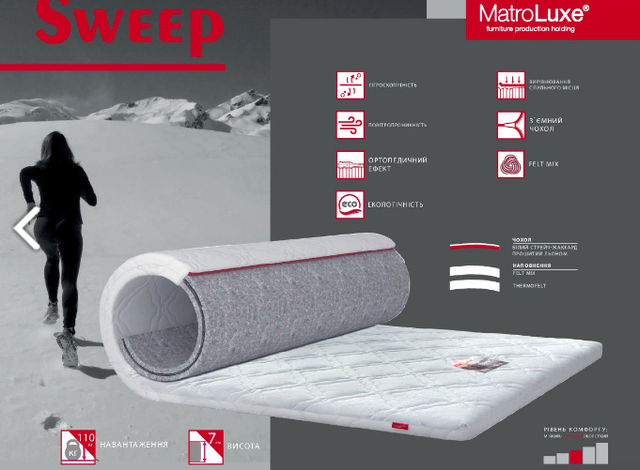 Характеристики товара Тонкий матрас ортопедический Matroluxe Sweep 80х190 см беспружинный
