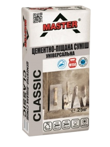 Характеристики товара Цементно-песчаная смесь для штукатурных работ MASTER CLASSIC 25 кг