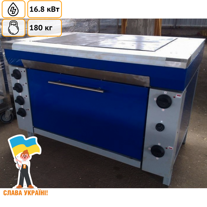 Электрическая плита ЭПК-4Ш стандарт предназначена для готовки первых, вторых, третьих блюд на профессиональной кухне заведений. Мощность - 16.8 кВт.