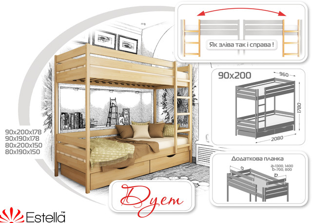 Достоинства и преимущества детской двухъярусной кровати Дует от украинской фабрики Эстелла: