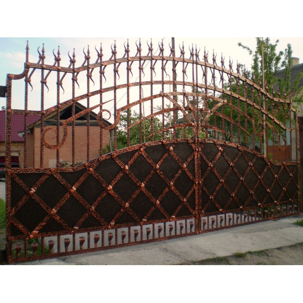 Ворота кованые Окко - красивая художественная форма, хорошо дополнит любой дизайн вашего двора. Модель плюс ( +11100 грн) Ворота кованые Окко Профильная труба 40 х 25 мм Профильная труба (фактурная) 15 х 15 мм Полоса (гладкая) 30 Пики литье Ложечки кованые Заклепки имитация Листовой металл 1,2 мм Грунт и краска Sniezka (производство Польша). Нанесение патины, напыления Ворота кованые Окко Плюс Профильная труба 40 х 25 мм Квадрат (фактурный) 14 Полоса (фактурная) 40 Пики литье Ложечки кованые Заклепки кованые Листовой металл 1,5 мм Грунт и качественная краска (производство Испания). Нанесение каучукового покрытия, нанесение цветного напыления, патина, лак.