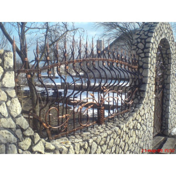 Забор кованый Князь - отлично убирает эффект глухой стены. Сроки изготовления изделия зависят от: замера территории по периметру которой будет устанавливаться забор; изготовления кованых элементов данной изделия; установки забора, количества секций. Цена указана за 1 погонный метр